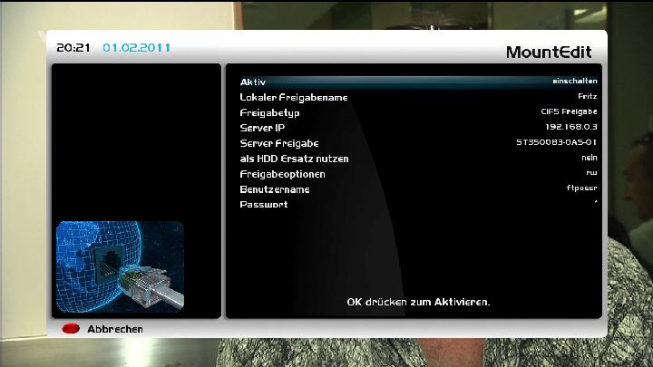 Ich verzweifel langsam hab schon nach einigen Anleitungen versucht aber ich bekomm die Festplatte an der Fritzbox einfach nicht gemounted. Erkannt wird die platte an der fritzbox und per ftp vom Laptop kann ich sie auch erreichen aber über den netzwerkbrowser finde ich sie nicht auch als cifs freigabe Oder über Experte... Was kann ich noch machen?? Hab newnigma2 3.1.2 auf der Box und auf der Fritz ist auch das aktuellste drauf...