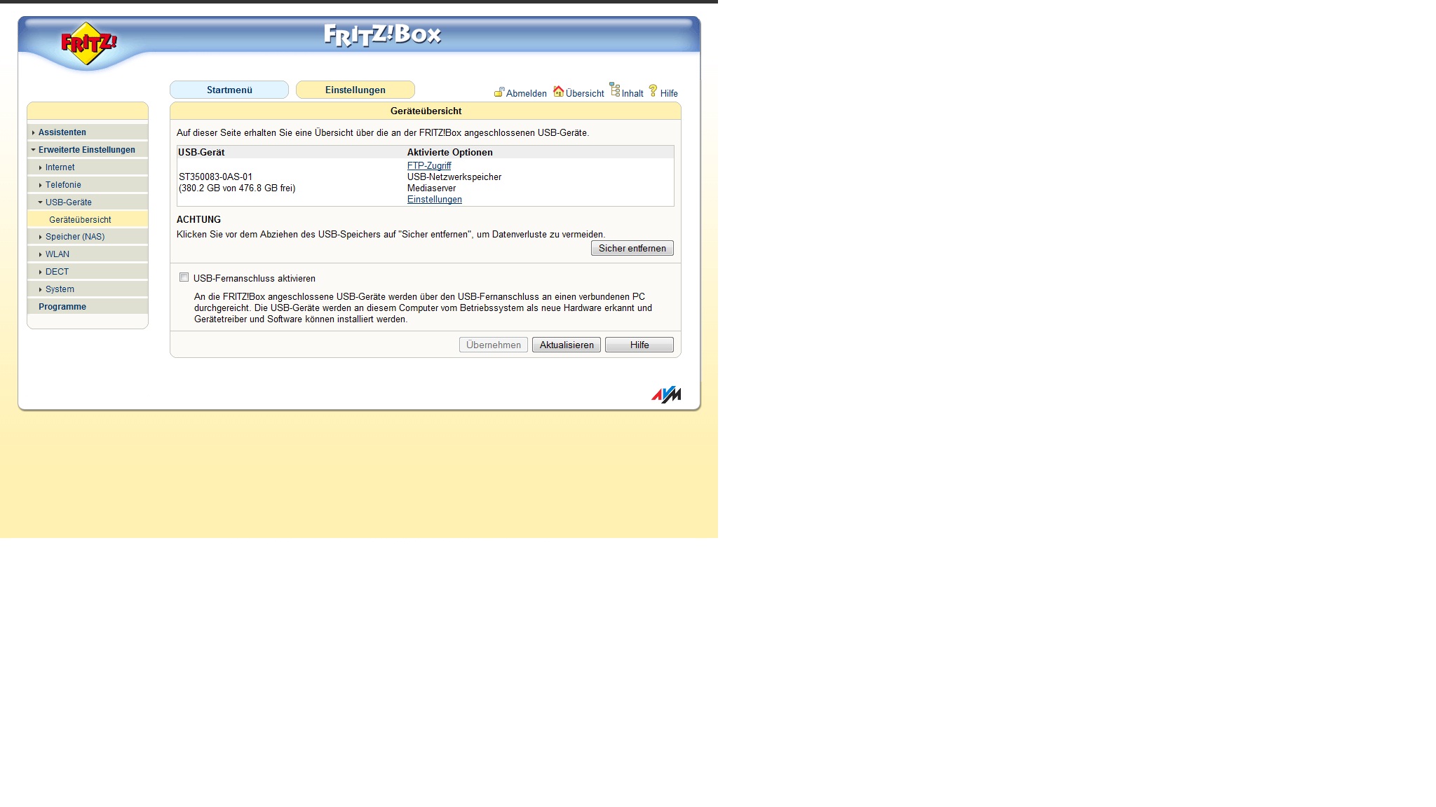 Im Menu der Fritbox hast du da zufällig Mediaserver (oder so ähnlich) aktiviert?.