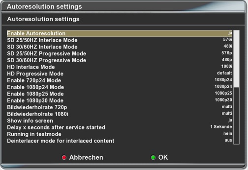 Es gibt ja diese Einstellungen bei der Dream "Autoresolution". Ich habe festgestellt, dass bei einem Input von 1080p30 meine Anlage (AV-Receiver oder Beamer) streikt und ich nur mehr ein schwarzes Bild zu sehen kriege.