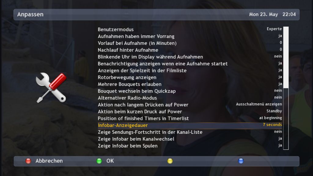---- In infobar rechts von BER is ein user-Feld.Einstellen kan man Video-Bitrate, TunerInfo oder Provider.