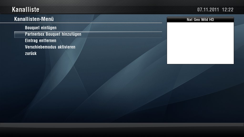 Mit der aktuellen Partnerbox-Version auf dem Feed des Release Images der 7020HD kann man jetzt Sender oder ganze Bouquets der Partnerbox direkt in die Channelliste einfügen.