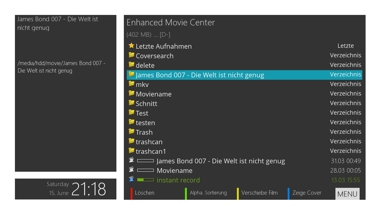 Du kannst dir deine Bookmarks (nur alle oder keine) in EMC auch direkt unter MovieHome anzeigen lassen. (Im EMC Setup unter "Zeige Lesezeichen in der Filmliste" einstellen)