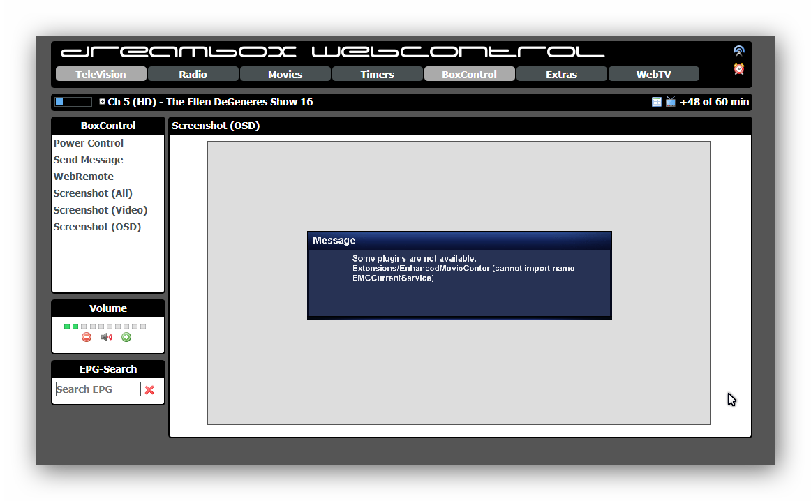Daher bin ich gezwungen, das Originalbild von Dream-Multimedia zu verwenden. Wie bereits erwähnt, sind meine regulären Aufnahmen alle Serienshows, daher brauchte ich Emc, um den Titel der einzelnen Aufnahmen anzuzeigen. Bitte geben Sie eine Emc-Version an, die mit dem Originalbild kompatibel ist. Bitte helfen