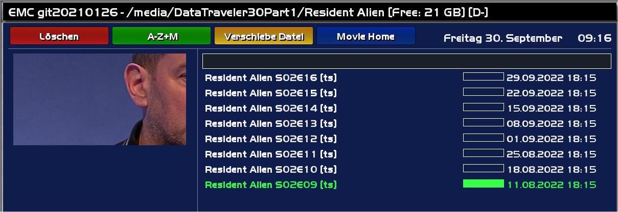 Aber ich habe auch schon versucht, die Datums aller Files (.eit, .ts, .sc usw.) zu ändern, so dass S02E09 das niedrigste Datum + Uhrzeit hat, also z.B. S02E16 hat 09.09.2022 00:01, S02E15 hat 10.09.2022 00:01 ... S02E09 hat 16.09.2022.00:01 (also die älteste Datei ist S02E09, die zweitälteste ist S02E10). Ebenfalls wurde S02E16 als erstes hochgeladen, dann S02E15 ... bis S02E09 (ist dann die am letzten hochgeladene).