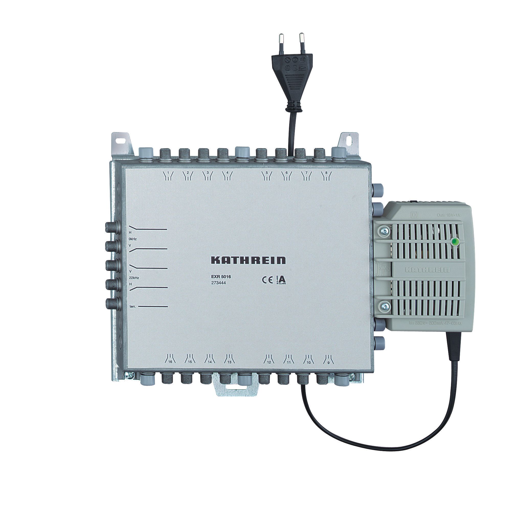 der Kathrein Multischalter ist eigentlich nichts exotisches. Über dessen eigenes Netzteil stehen die Anschlüsse für das LNB ständig unter Spannung, was man an der grünen Leuchtdiode des Netzteils sehen kann. Diese Kontrolldiode geht nur aus, wenn das Netzteil keine Spannung aus der Steckdose bekommt oder auf den Ausgängen zum LNB ein Kurzschluss ist.