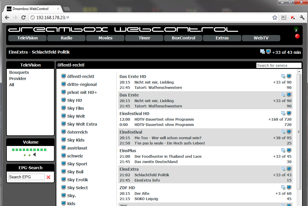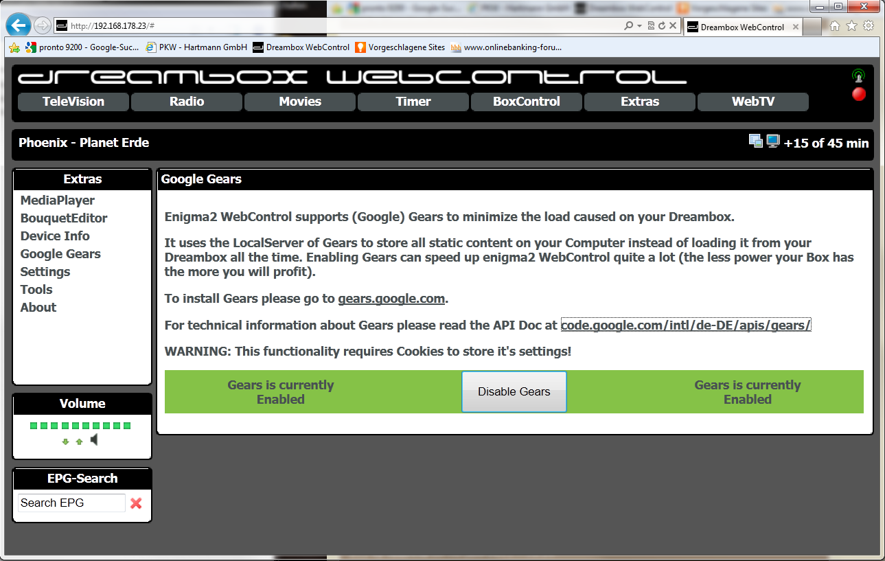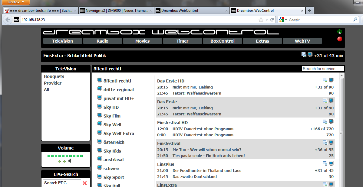 das Webcontrol (IP der Box=http://192.168.178.23/) hat mit dem IE9 ständig Probleme gemacht.