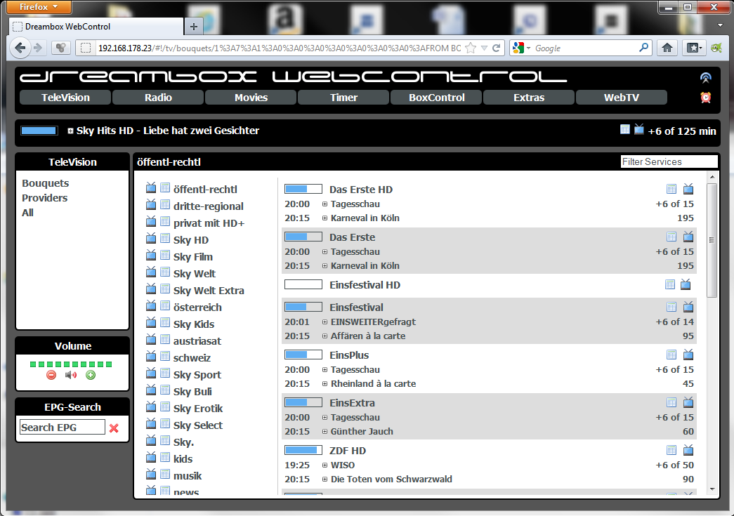 Ich bekomme nun Webcontrol weder mit IE9 noch mit Google Chrome noch mit Firefox 10.0.1 ordentlich zum laufen. Die Streamingprogramme wie Dreambox Aircontrol greifen ja auch über das Webcontrol zu.