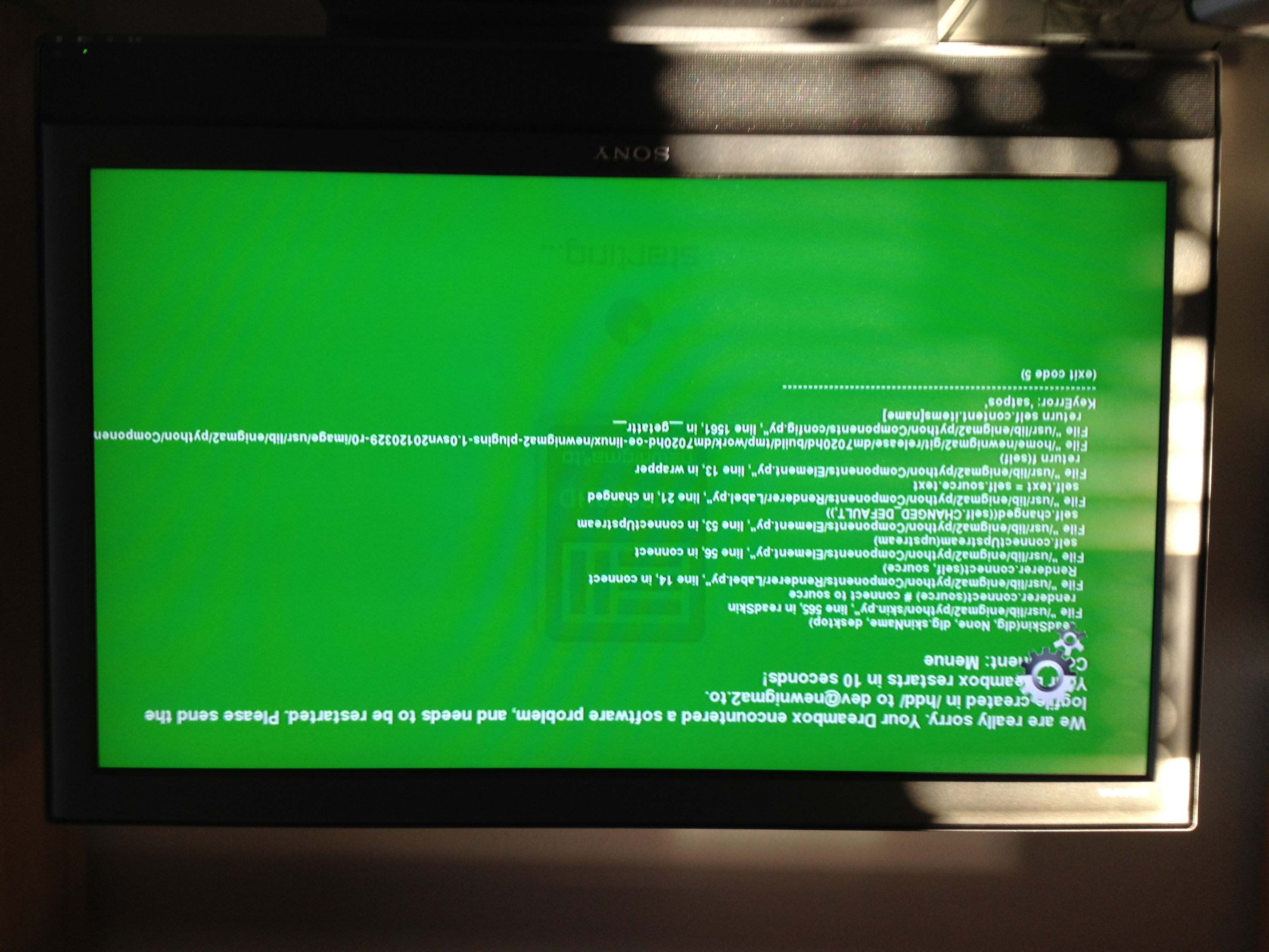 Hab ein Foto des Fehlerbildschirmes angehängt. Warum es allerdings am Kopf steht kann ich euch nicht sagen
