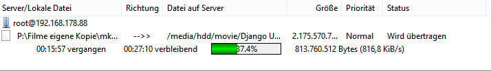 Bei mir ist die Übertragungsrate per FTP bei ca. 11MB/s