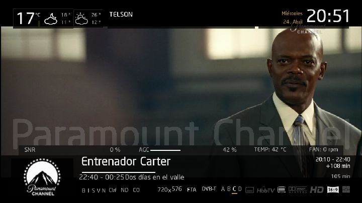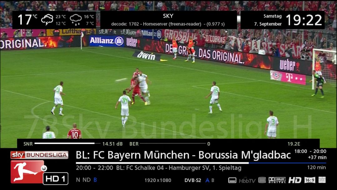 Auch wenn die Anzeige des Sendernamens (oberhalb der Infobar) auch ausgestellt ist und beim Zappen nicht angezeigt wird, wird bei Filmen trotzdem zusätzlich oberhalb der Statusleiste der Name angezeigt, der dann aber zusätzlich noch über den Rand hinausragt!