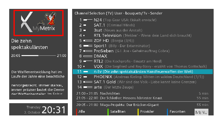 Aber was in Metrix toll aussieht, passt im Vali Epg gar nicht. Es wird nur ein kleiner verstümmelter Ausschnitt des Picons angezeigt. Aber weder im EPG, noch in Metrix kann ich das Verzeichnis definieren. Ich hab also im Moment die Wahl: entweder verstümmelte Picons im EPG oder MiniPicons im MetrixSkin. Optimal wären zwei verschiedene Pfade mit den jeweils richtigen Picons. In den "alten Metrix Versionen ging das mal.. siehe zitat im Post Nr. 485.