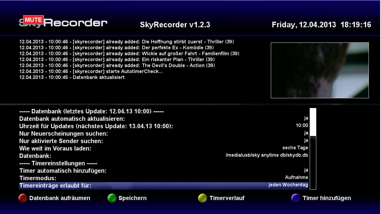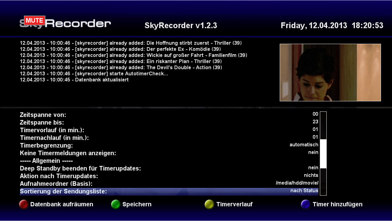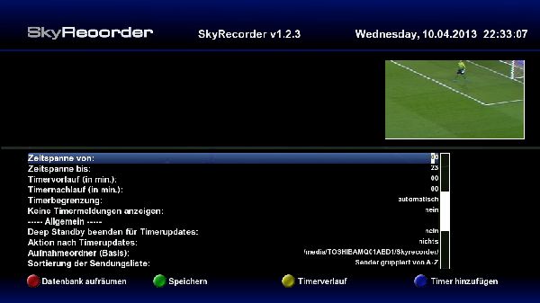 Timer auf automatsich hinzufügen und DB automatisch aktualisieren. Es funktioniert.Dreambox 7020 HD, 2x DVB-C/T Tuner, HD 3.0 TB WD AV-GP, KD G09, Sky D02