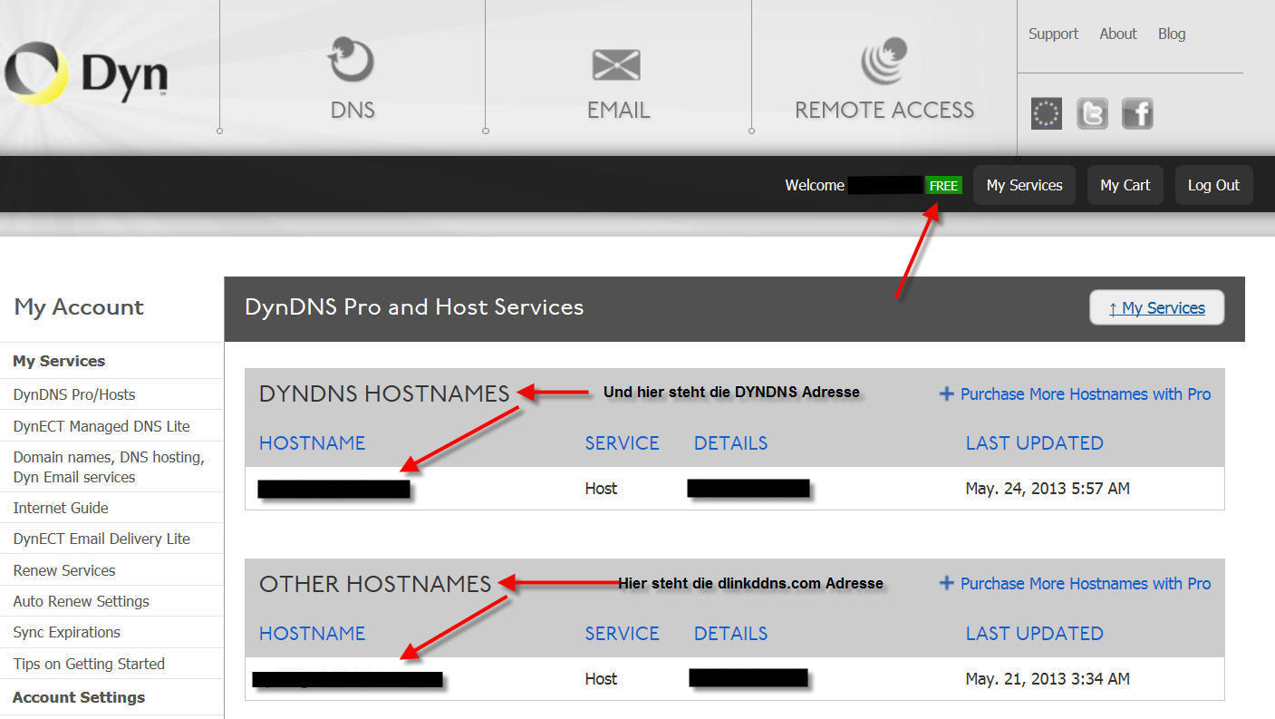 Also, es gibt eine Möglichkeit DynDNS ohne zu bezahlen zu nutzen, und zwar muss das Unternehmen Dlink ein besonders Abkommen mit DynDNS haben, weil alle Dlink Router Besitzer einen kostenlosen DynDNS Account erhalten. Da aber keine Seriennummer usw. beim Einrichten des Dlink DynDNS Accounts abgefragt wird, spielt es keine Rolle ob man wirklich einen Dlink Router besitzt.