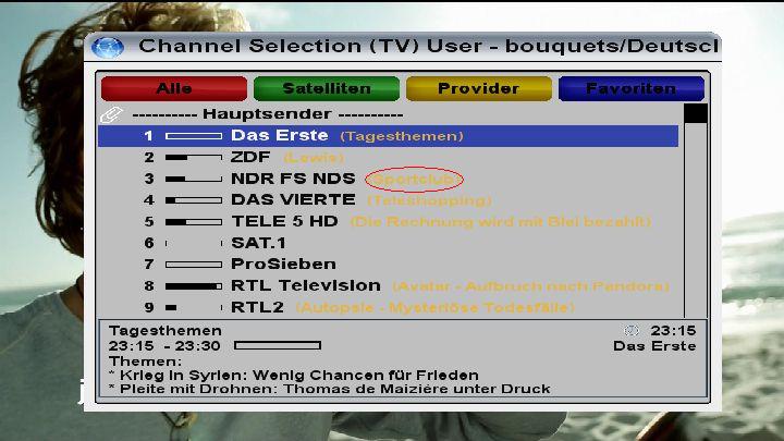 Nun musste ich leider feststellen das der geändert wurde!! Die Schrift in der Senderliste wo die Sendung angezeigt wird die gerade kommt, ist nun Gelb!!