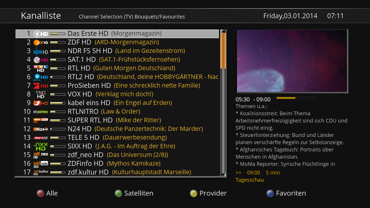 * Bouquetanzeige in Kanalliste zugefügt (siehe Bild oben)