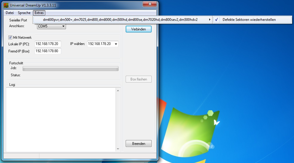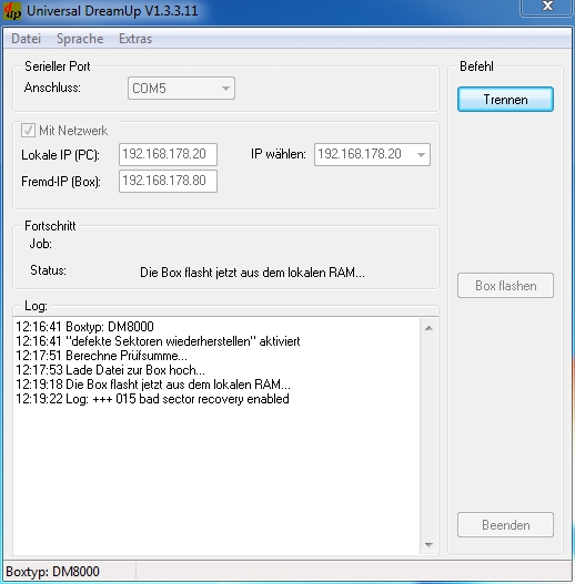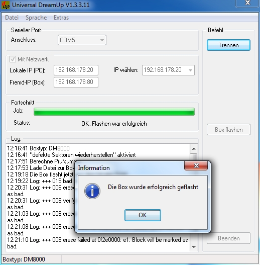 Dann hatte ich mein Nullmodemkabel geholt und mit Dreamup versucht hat recht lang gedauert bis ich mal connecten konnte.
