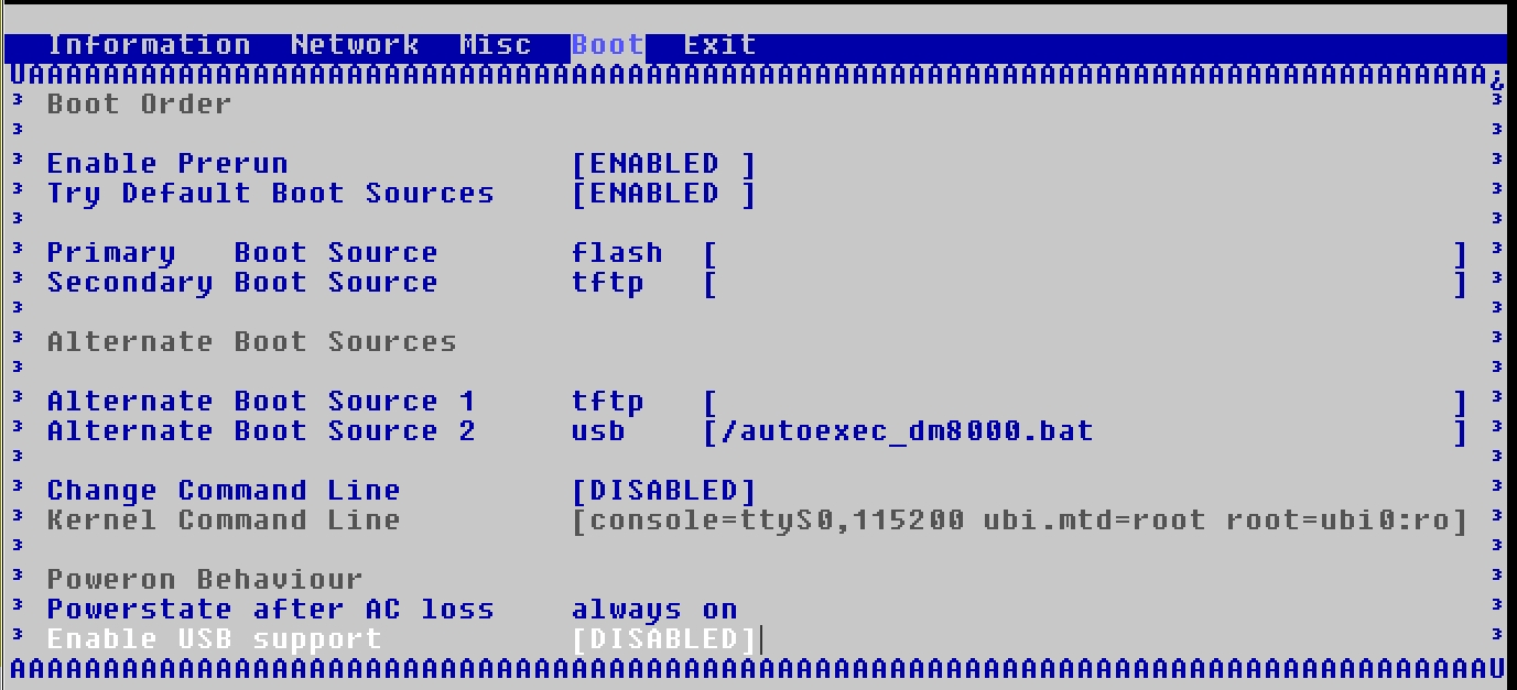 Disable und console=ttyS0,115200 ubi.mtd=root root=ubi0:rootfs rootfstype=ubifs rw