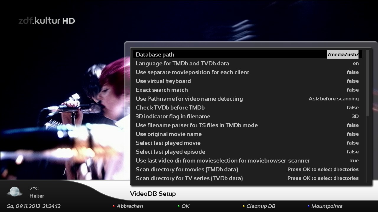 Sollte vom Skin an den Rändern etwas abgeschnitten sein liegt das daran, dass am TV noch ein Zoom aktiv ist. Je nach Hersteller ist die Bezeichung dieser Einstellung verschieden. Suche im Menü nach Overscan, just scan, 1:1, Pixel by Pixel o.ä. Einstellungen, um den vollen Bildbereich darzustellen.