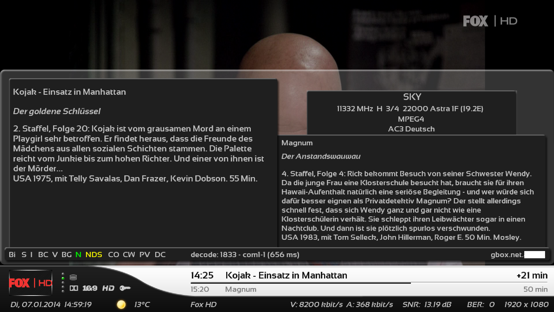 Auch noch zu beachten ist , das für die Anzeige der A+V Bitrate ,es erforderlich ist sich vom Feed den BitrateViewer auf die Box zu schieben