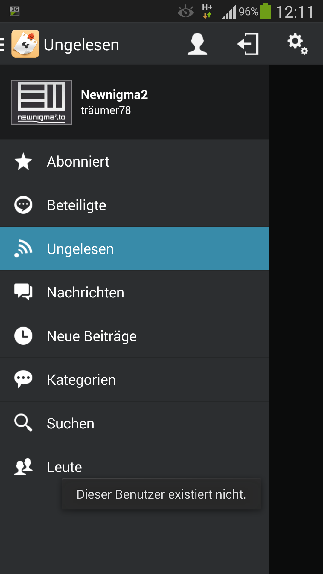 Und was mir noch aufgefallen ist, wenn ich diese Silhouette oben betätige um in mein Profil zu gelangen, lädt es ganz kurz und unten wird mir angezeigt "Benutzer existiert nicht" siehe Screenshot
