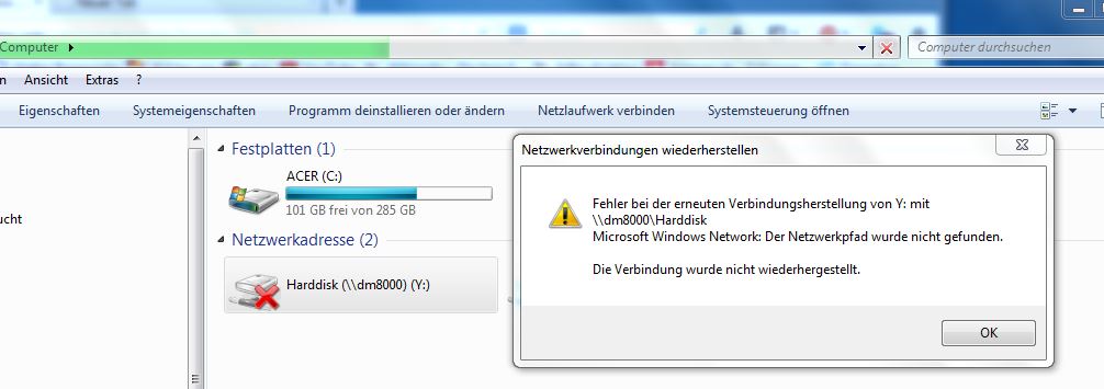 DB8000 Verbindung mit dem Windows Explorer klappt nicht mehr