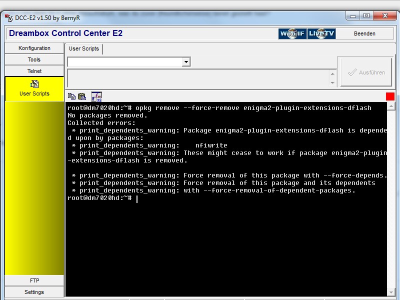 Die benötigen Abhängigkeiten (mtd-utils / dreambox-buildimage) müssen nur 1x installiert werden, bei zukünftigen Updates des Plugins reicht ein Update des Plugins (dflash) mit hoher Wahrscheinlichkeit aus.