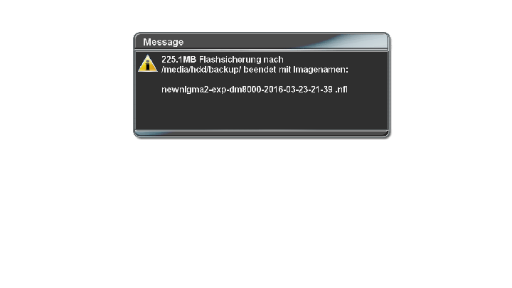 Ich wollte eine Sicherung machen, welche mit einer Größe von ca. 60MB mit dem Kommentar "aber mit Fehlern" fertiggestellt wurde. Im weiteren Verlauf kam es zu einem Absturz und die Box fuhr nicht einmal mehr hoch. Es sah ganz so aus, als wenn die Box komplett jungfräulich wäre.
