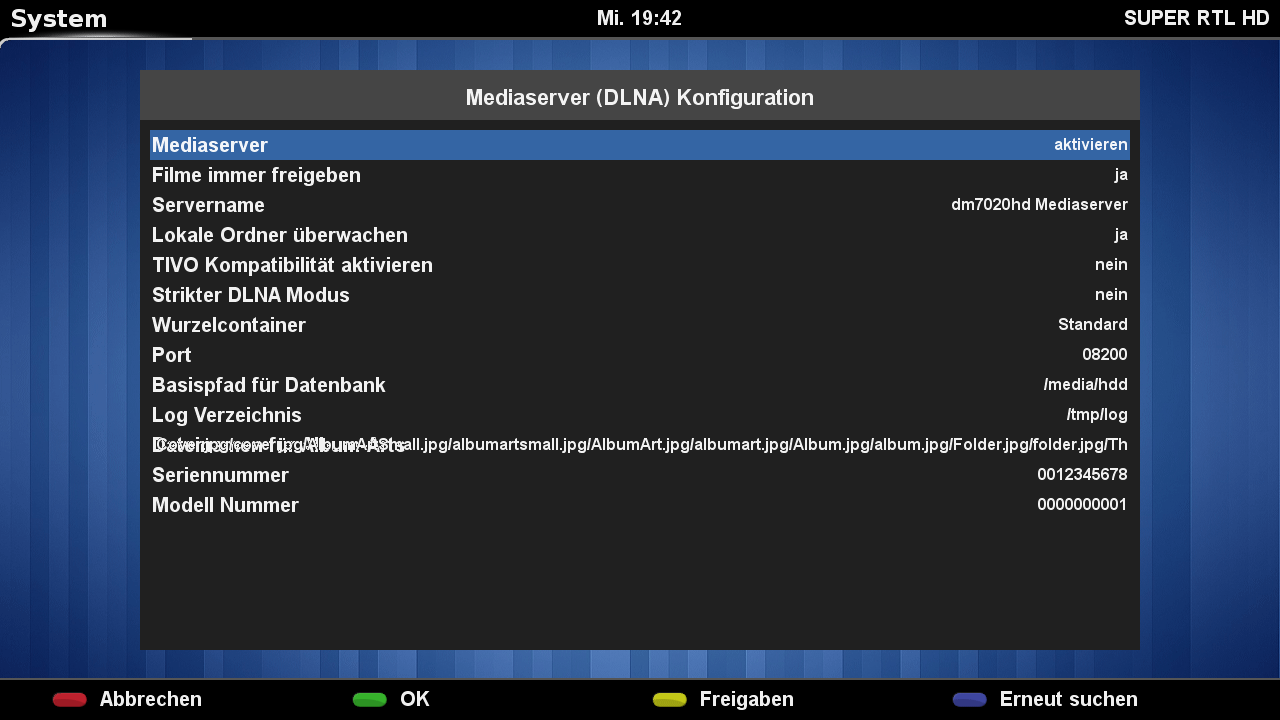 Zugriff von Samsung Fernseher H-Serie auf Festplatte Dreambox 8000