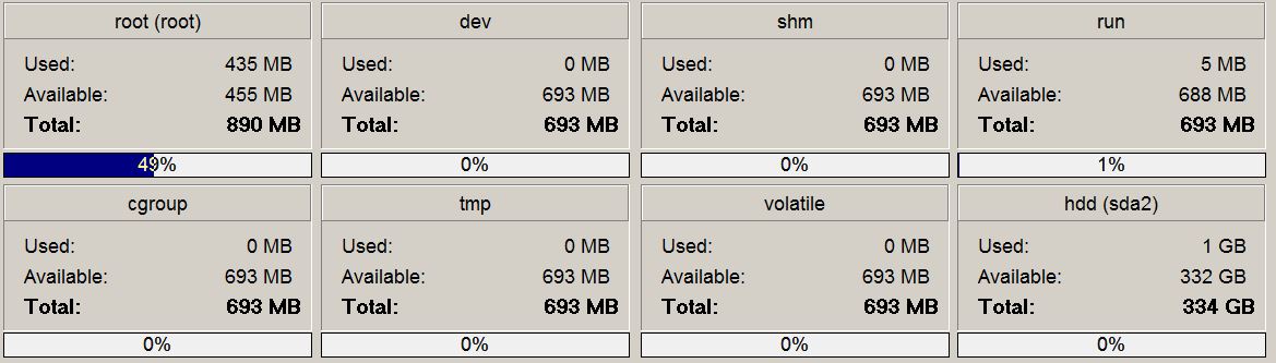 Angezeigt werden in den Einstellungen / System / Speichergeräte nur 334 GB. Im DCC genau das gleiche
