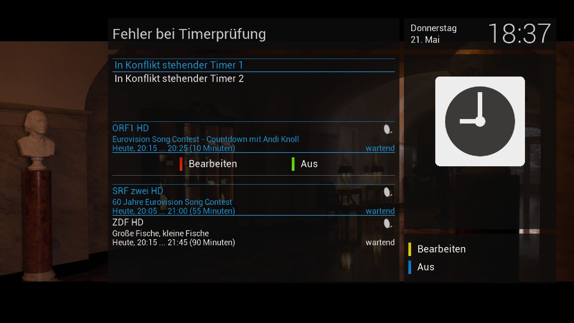 Ab und zu kommt es vor, dass ich manche Sendung nicht manuell über das EPG hinzufügen kann. Ich habe das Problem zum Beispiel übermorgen für Akte abends auf Sat 1. Wenn ich diese Sendung programmieren will über das EPG kommt: