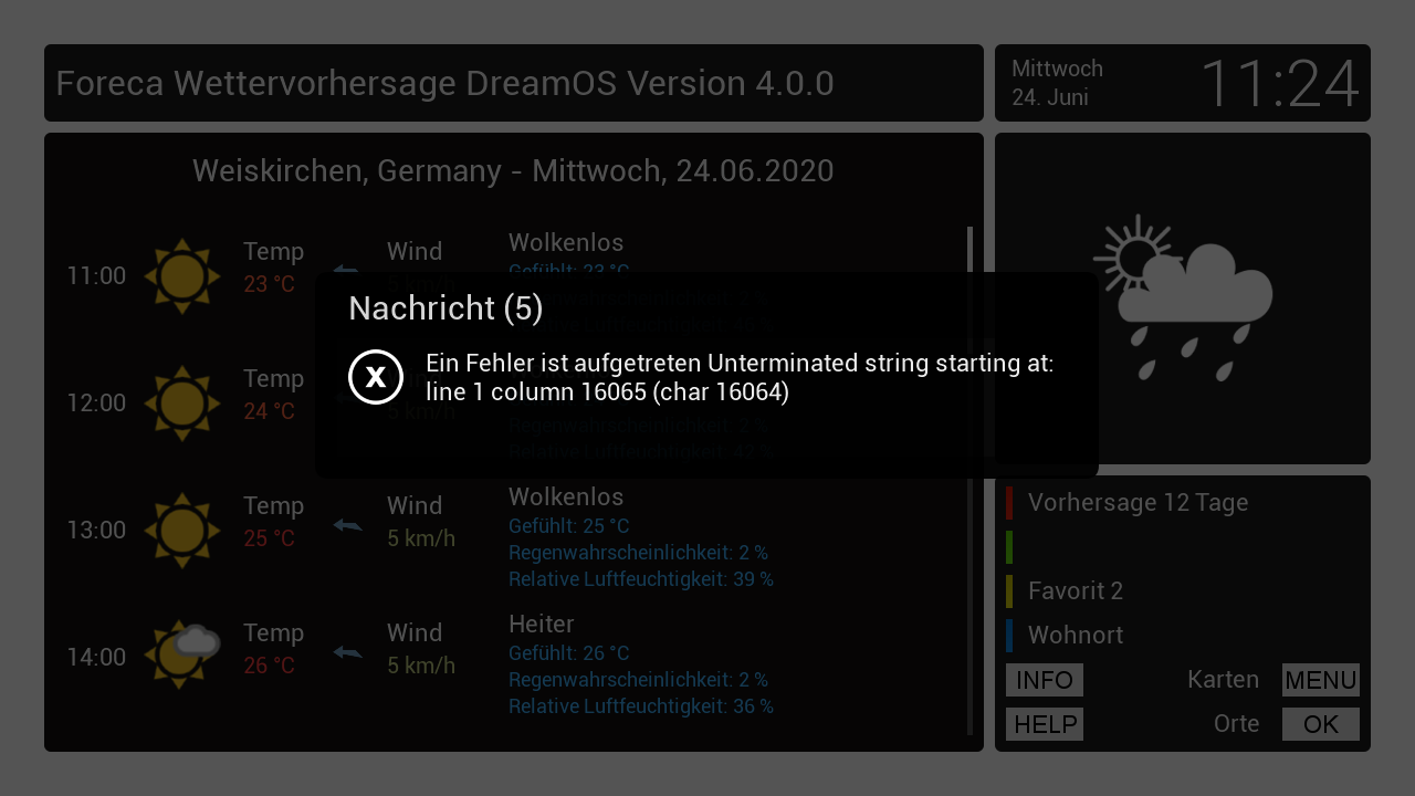 vielen Dank fuer das Update! Mir ist aufgefallen, dass bei Sprung zu einem Tag ueber die Zifferntasten Tag und Datum nicht geaendert wird, die Vorhersage fuer den jeweiligen Tag wird aber geladen.