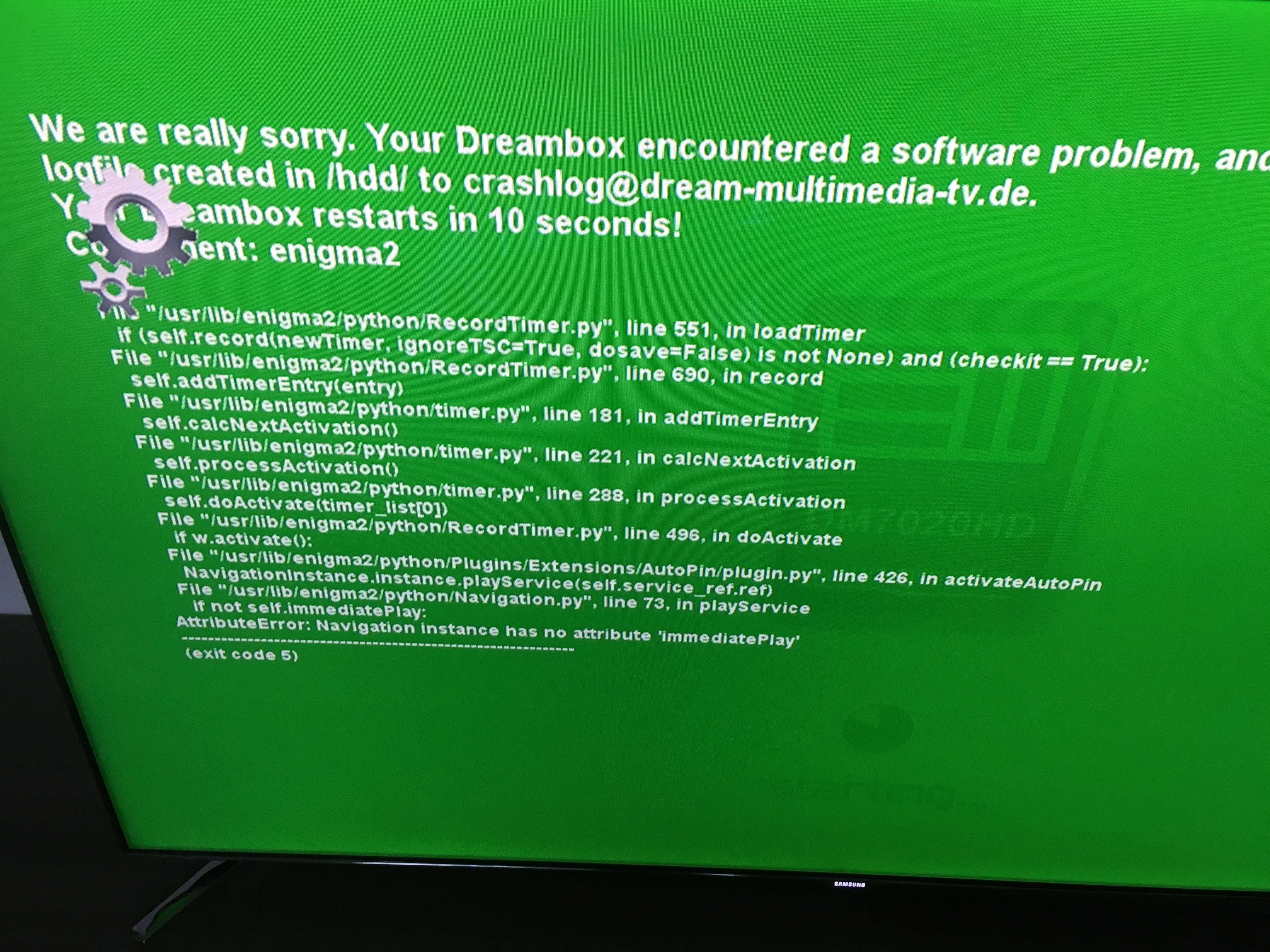Es Handelt sich um meine 8K mit 4.0.16 Image. Ich habe über das Webinterface epg refresh installiert und den Guy neugestartet. Jetzt hängt sich die Box mit Greenscreen auf und startet neu.