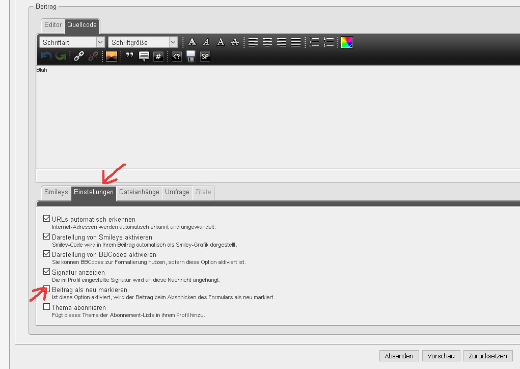 • Zusätzliche Funktion in der Forensoftware: Beitrag als neu markieren