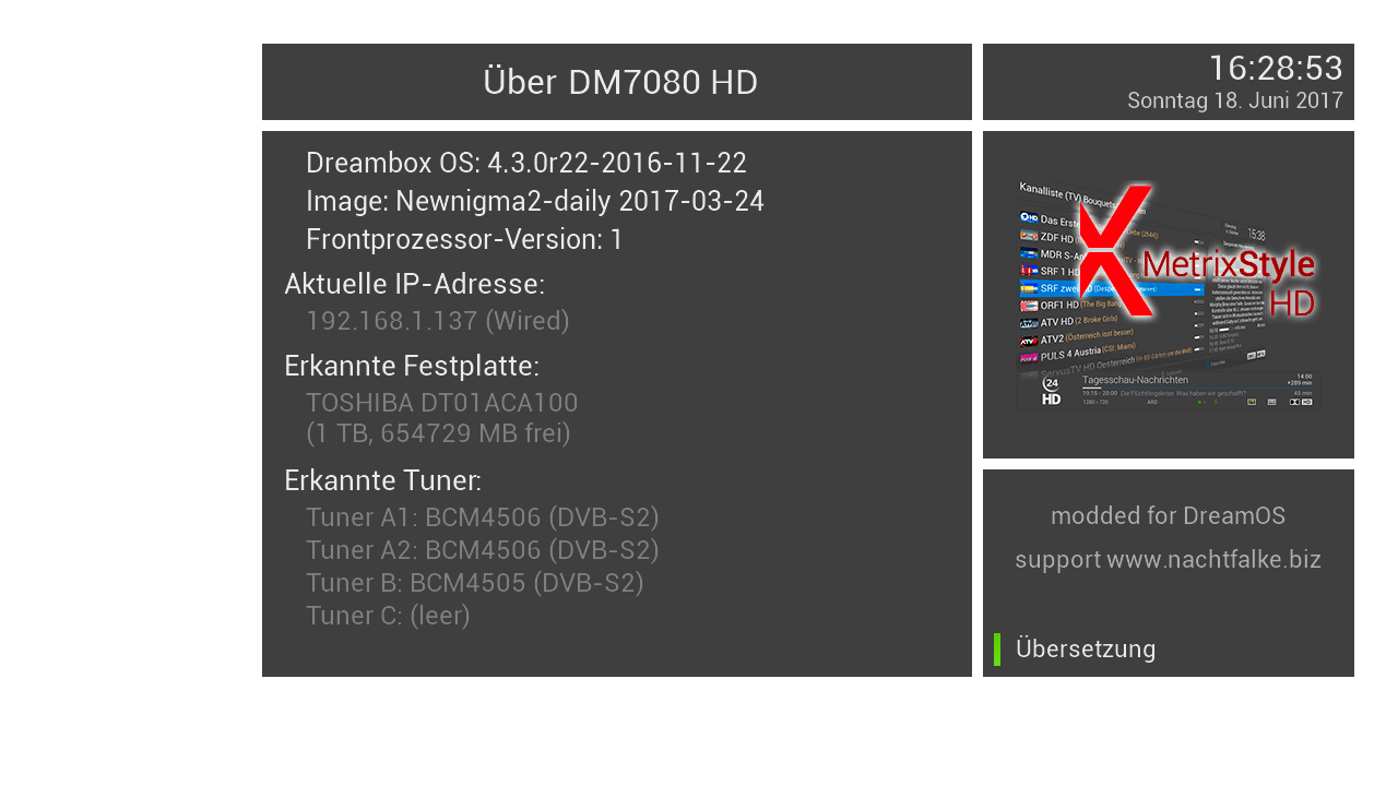 Mit dem SKIN "NUKE.FHD" funktioniert der Satloader nicht. Die Einstellungen werden nicht angezeigt. Wenn ich auf den SKIN "newnigma2-HD" umstelle geht alles.