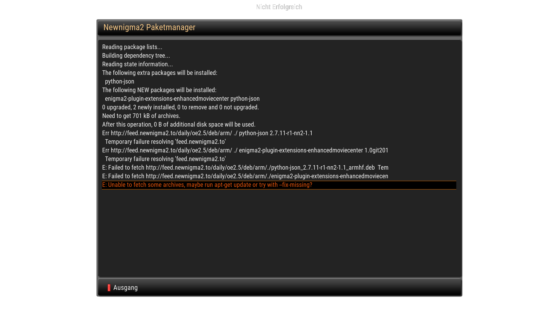 das internet an der box richtig einstellen, da steht doch failed to resolving feed.newnigma2.to