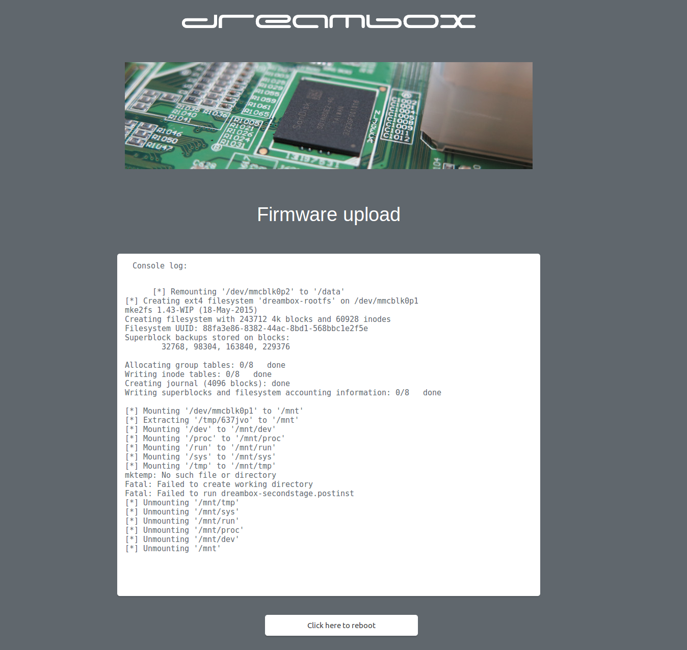 Werde später mal ein log machen bei meinem aktuellen Image wo läuft, damit man vielleicht sieht was nach dem Abbruch weiter geladen wird.