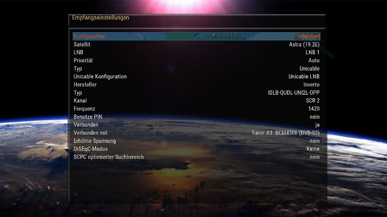 DM900, Inverto Unicable Quad IDLP-QUDL42-UNI2L-1PP, der Einfachheit halber direktes Kabel ohne Splitter zum Receiver (aber auch mit Splitter getestet), keine derartige Probleme mit Vorgänger Vu+ Solo2 und mit Sony TV, Festplatte neu und standardgemäß initialisiert, kein Pay-TV (Sky/CI+/...), NN2 von Sonntag, Empfangsqualität meist zwischen 14 und 15dB.