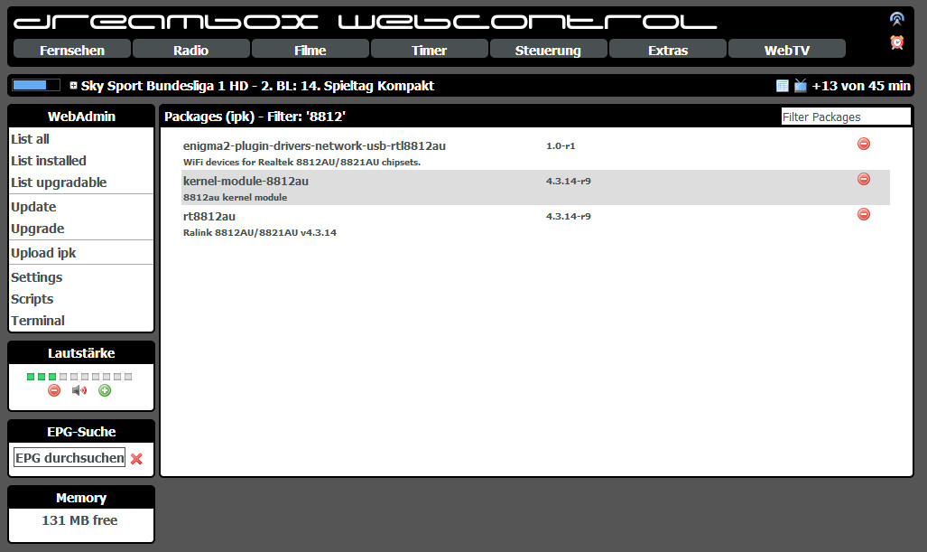 das wlan rtl8812au funksioniret mit imag opentv 5.3