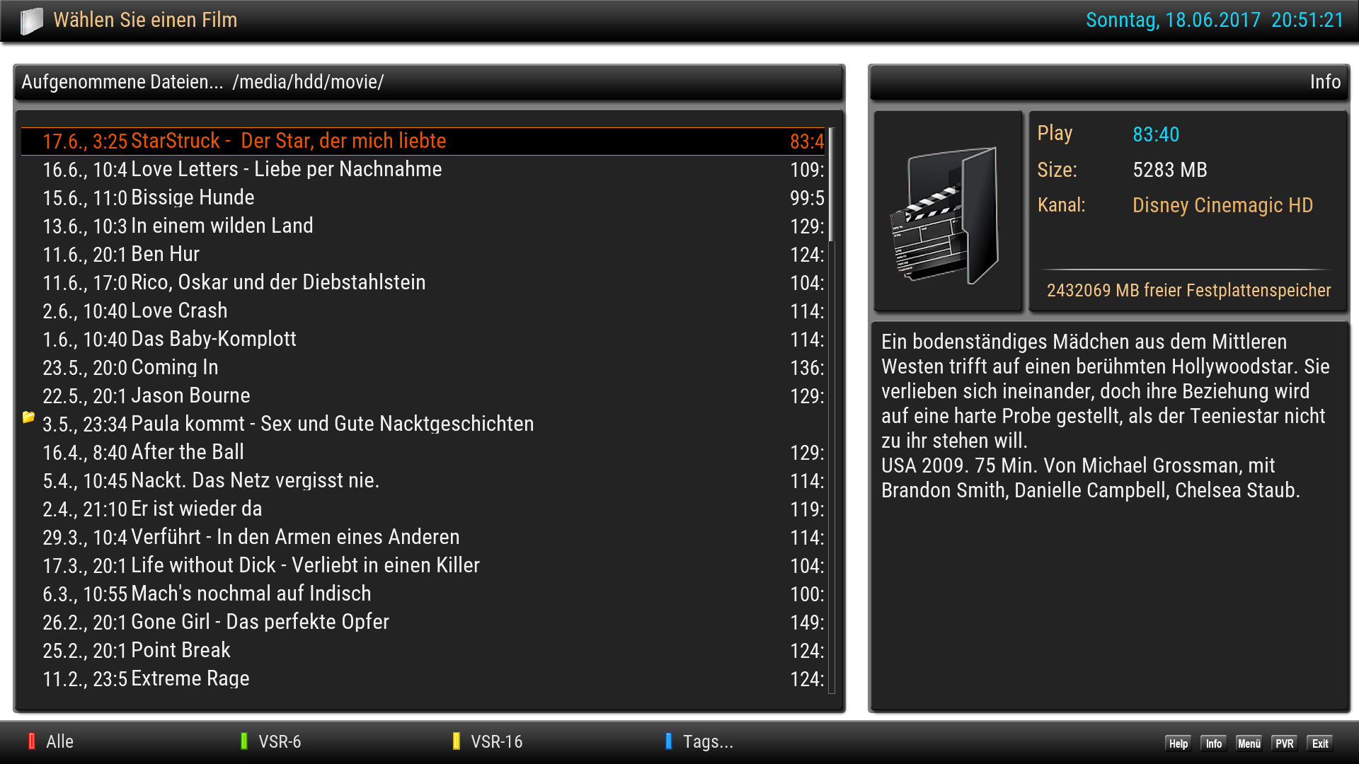 Falls sich das implementieren lässt, dann wenn möglich auch gleich das Szenario "Film beendet" anpassen, denn wenn ich da einen der Punkte wähle, die zurück in die Filmliste springen, dann kommt auch erst wieder das Menü. -