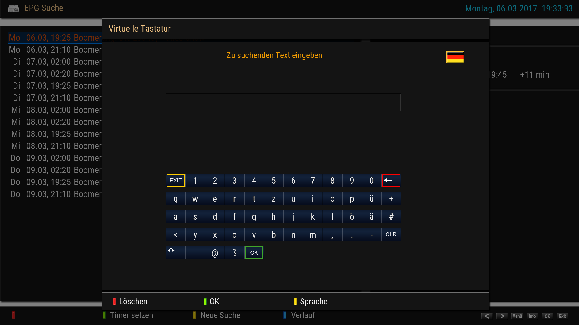 Eine weitere Kleinigkeit ist mir aufgefallen, was aber schon im OE 2.2 bei mir so aufgetreten ist: wenn ich in der EPG-Suche mittels Fernbedienung eine neue Suche eingeben will, ist die zugehörige Bildschirmtastatur nur teilweise auf dem Schirm zu sehen. Ein Beispiel habe ich als Screenshot angehängt.