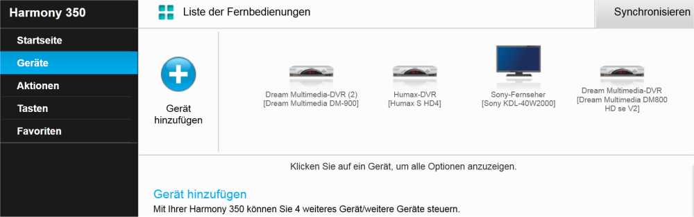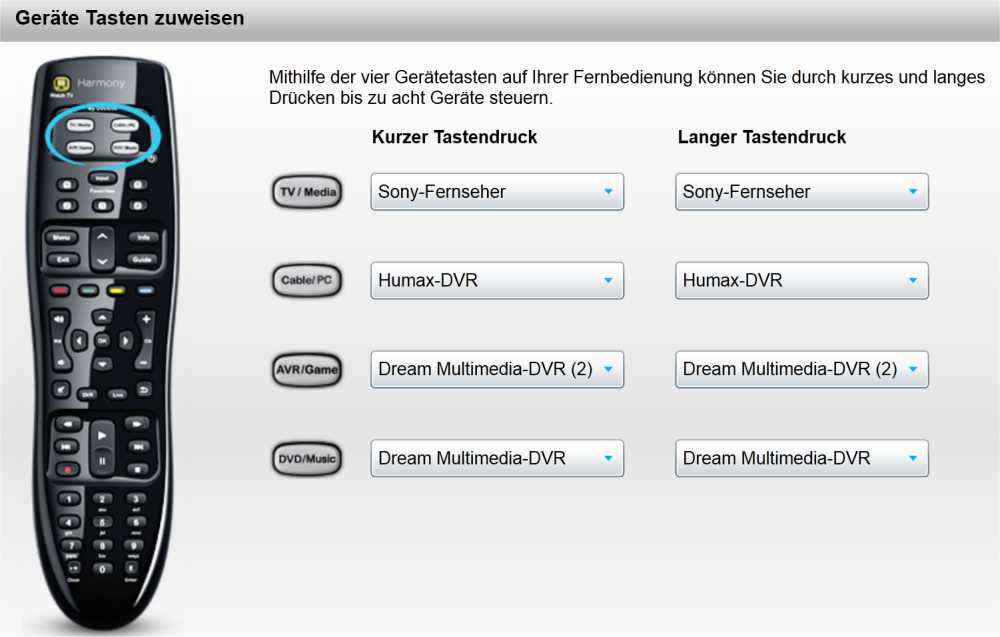 Wie bzw. mit welchen Einstellungen kann ich beide auf der Harmony bedienen.