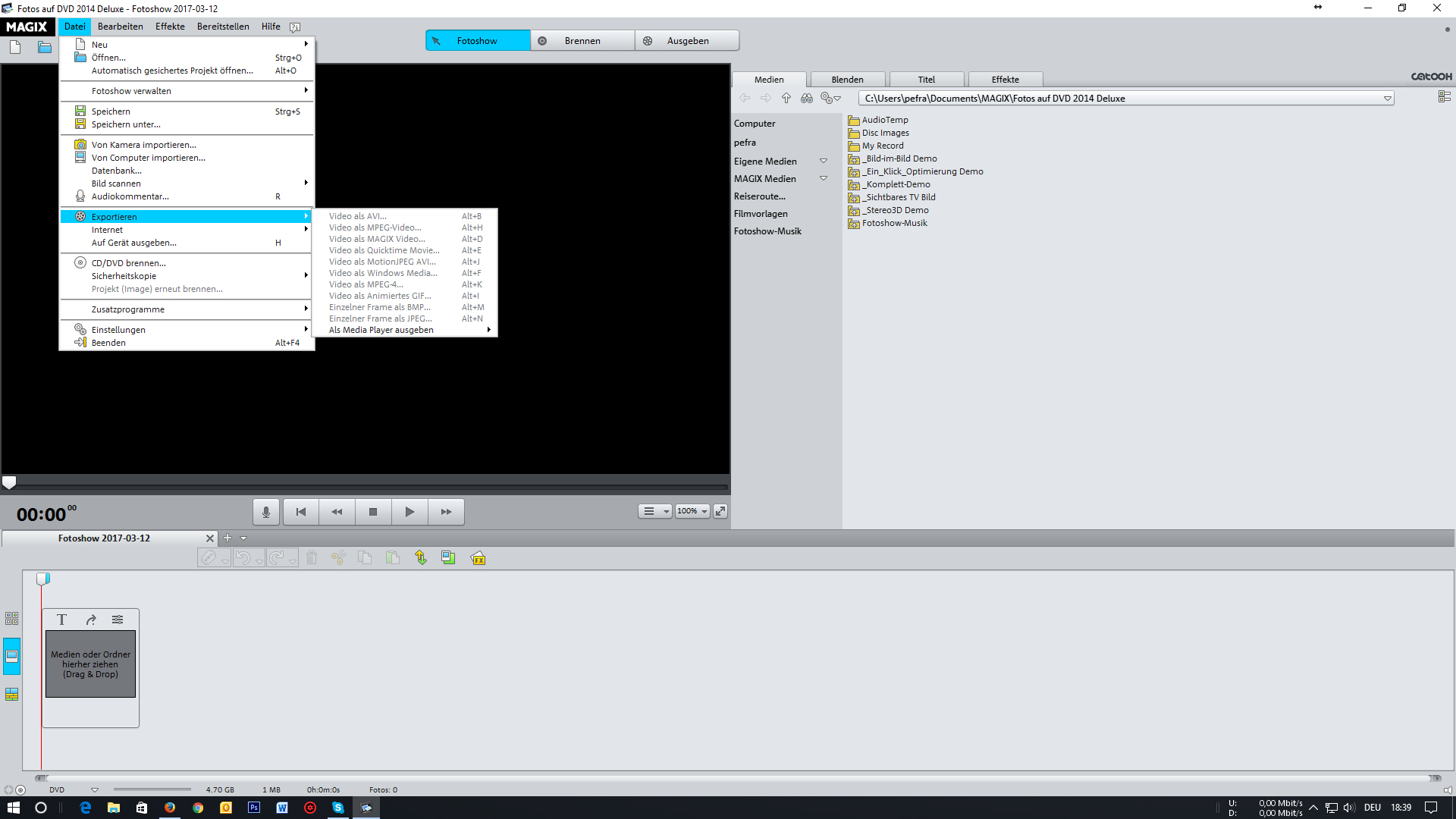 Jedoch kann ich bearbeitete Bilder als Diashow (mit dem Magix Fotos auf DVD)mit Musik abspielne.