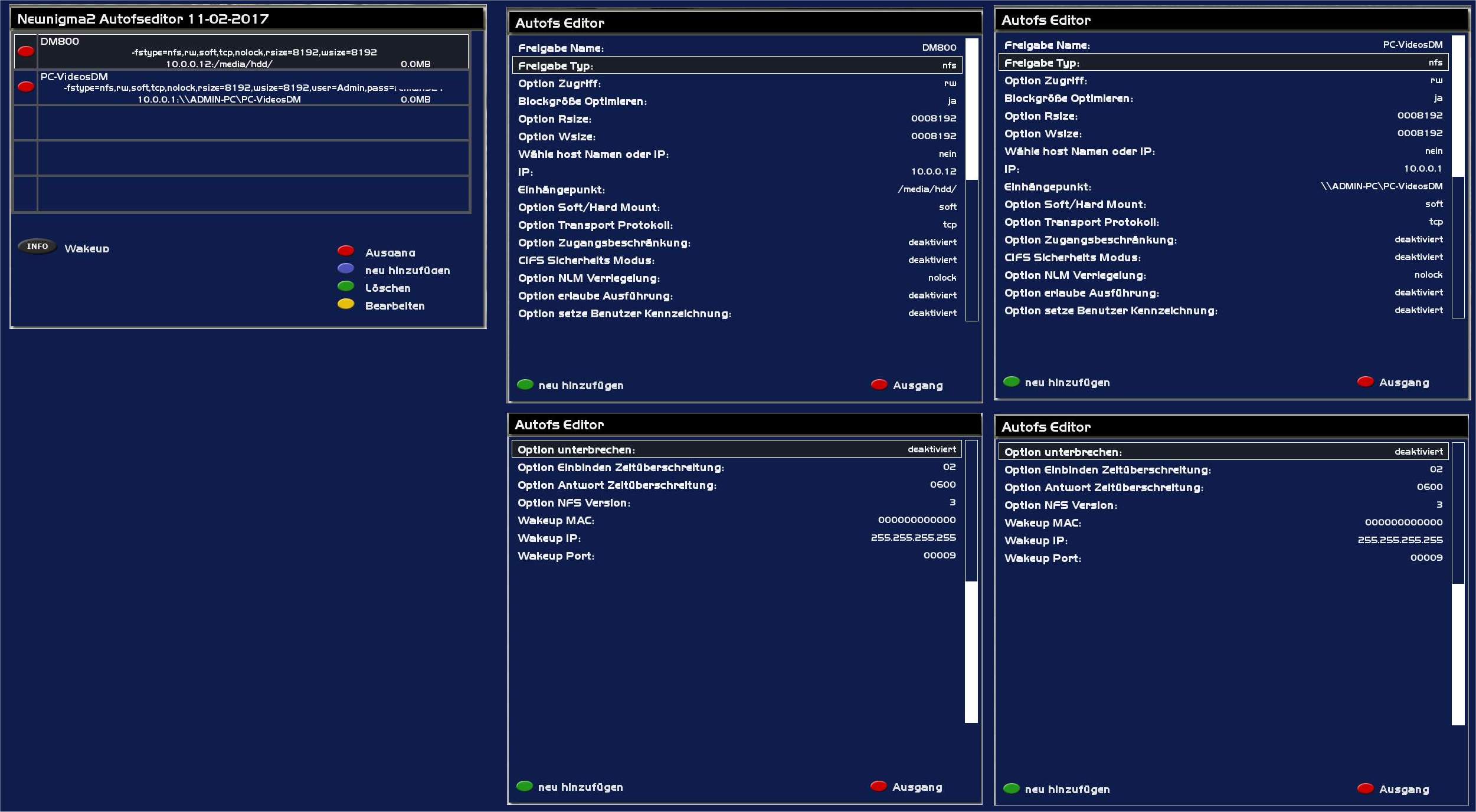 Weiters Screenshots von AutoFsEditor, AutoMountManager und Netzwerkbrowser (sind die Screenshots der DM900) und vom PC.