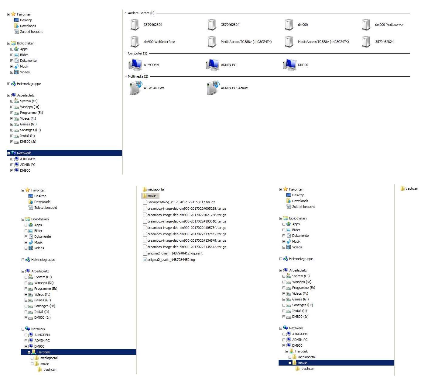 Interessant ist noch, dass die Freigabe der DM900 am PC zu sehen ist, nicht aber die der DM800. Wobei aber die Filme nicht sichtbar sind am PC (siehe Screenshots).