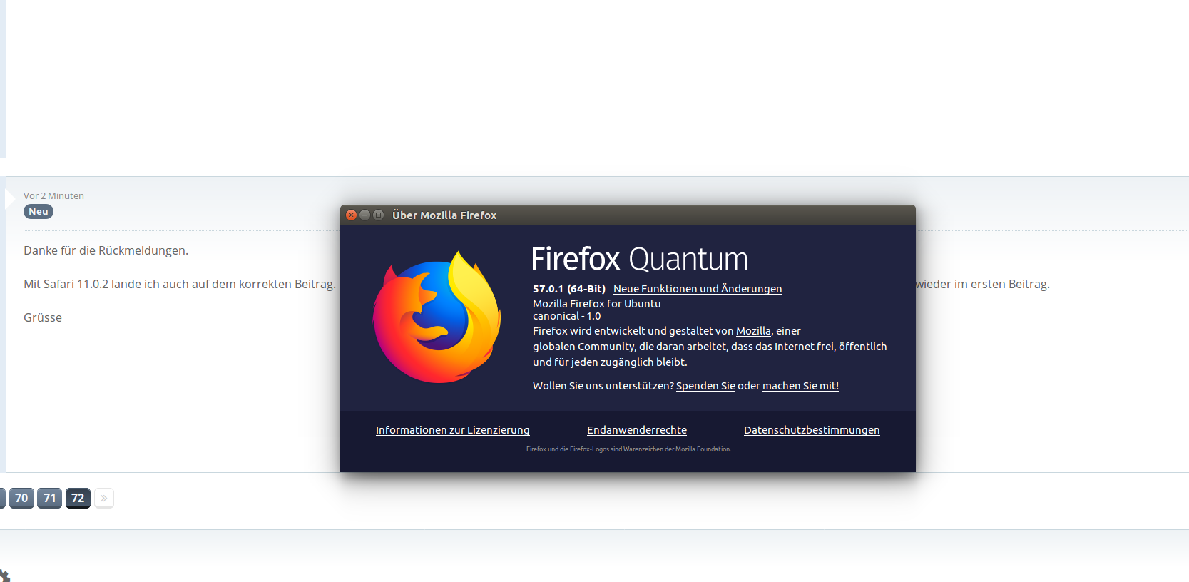 Mit Safari 11.0.2 lande ich auch auf dem korrekten Beitrag. Mit meinem Standard-Browser Firefox 57.0.1 (ohne Addons) kann ich mir nen Elch klicken und lande immer wieder im ersten Beitrag.