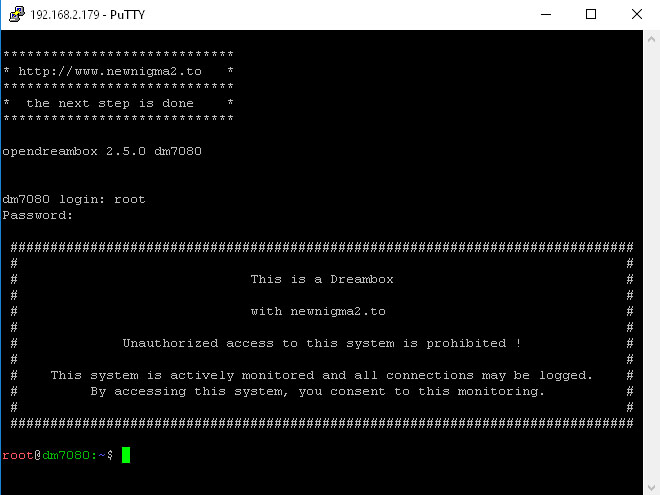 Man verwendet den User newnigma2 mit dem Passwort DreamOne. Der User hat sudo Rechte (Beispiel für die Anwendung siehe dort).