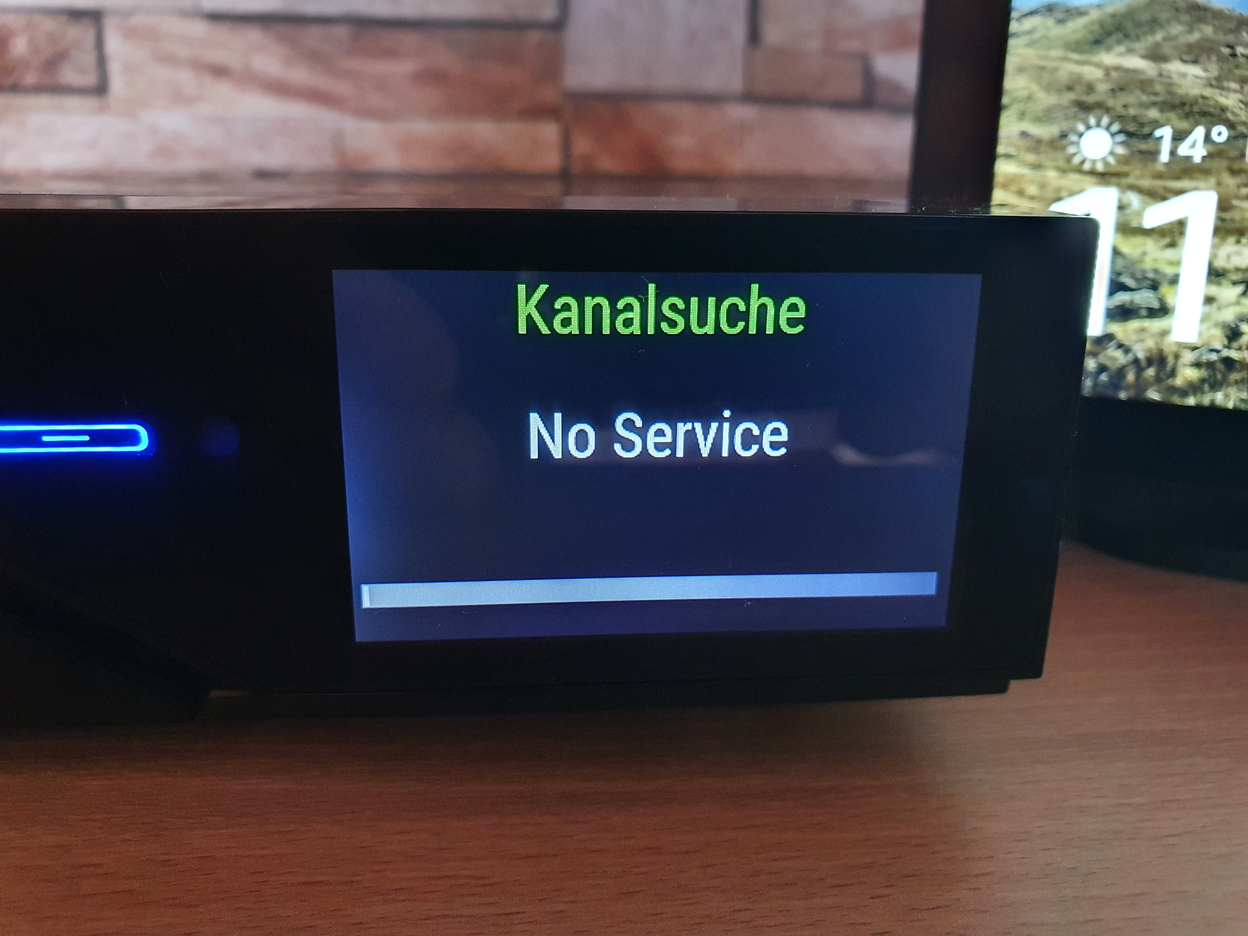 Das aktuelle weekly Image geflasht, aber kein Empfang. Er findet keine Sender und im Display steht "no Service ". Im "Sat-finder" sind 8 tuner (a1-a8) aber überall kein Signal. Im Auto. Sendersuchlauf findet er keine Sender..