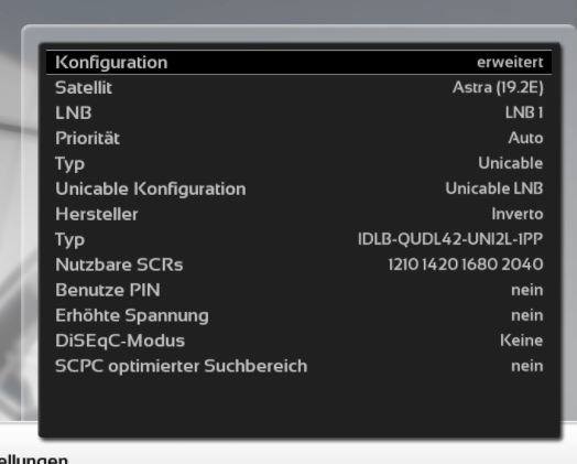 habe hier eine DM920 mt FBC Tuner. Daran ein Inverto Unicable LNB (nur LNB, kein Matrix) - Inverto IDLB-QUDL42-UNI2L-1PP .