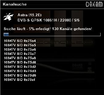Genau das gleiche Spiel wie vorher, die Astra Sender werden gar nicht erst gefunden.