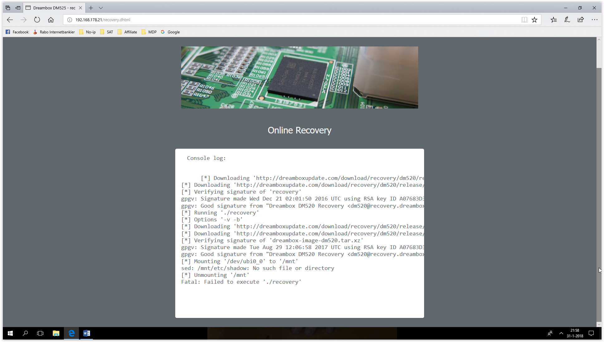Ich habe versucht die rescue loader zu starten, was mir gelungen ist und versucht recovery online zu machen.